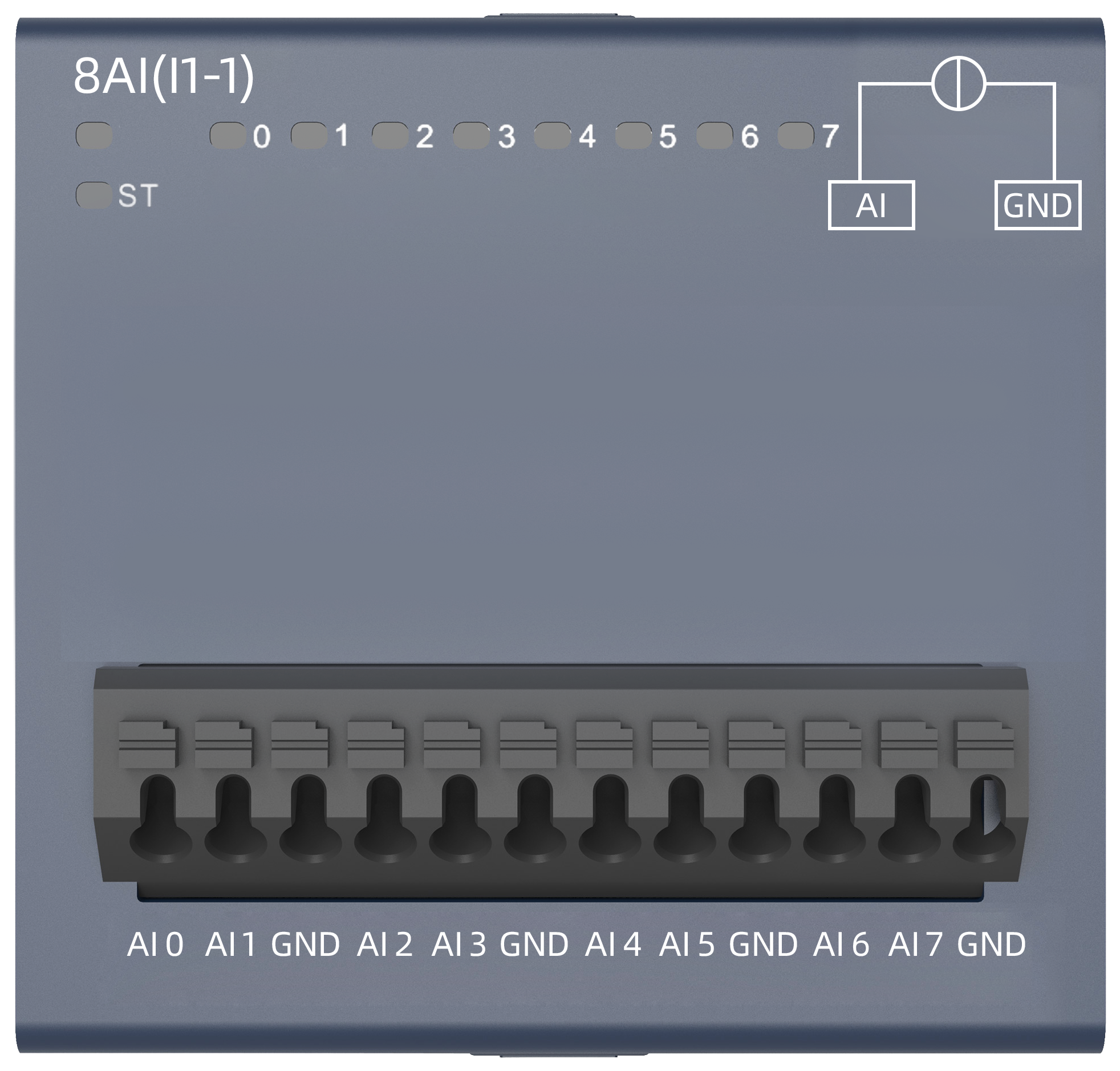 8AI(I1-1)8通道模拟量输入0-20mA,4-20mA,分辨率12bit,精度0.2%,用户量程可设置, 单排欧式端子 ★面板(同一端子类型)为一个标准件*端子类型:单排欧式端子      信号模块:模拟量模块