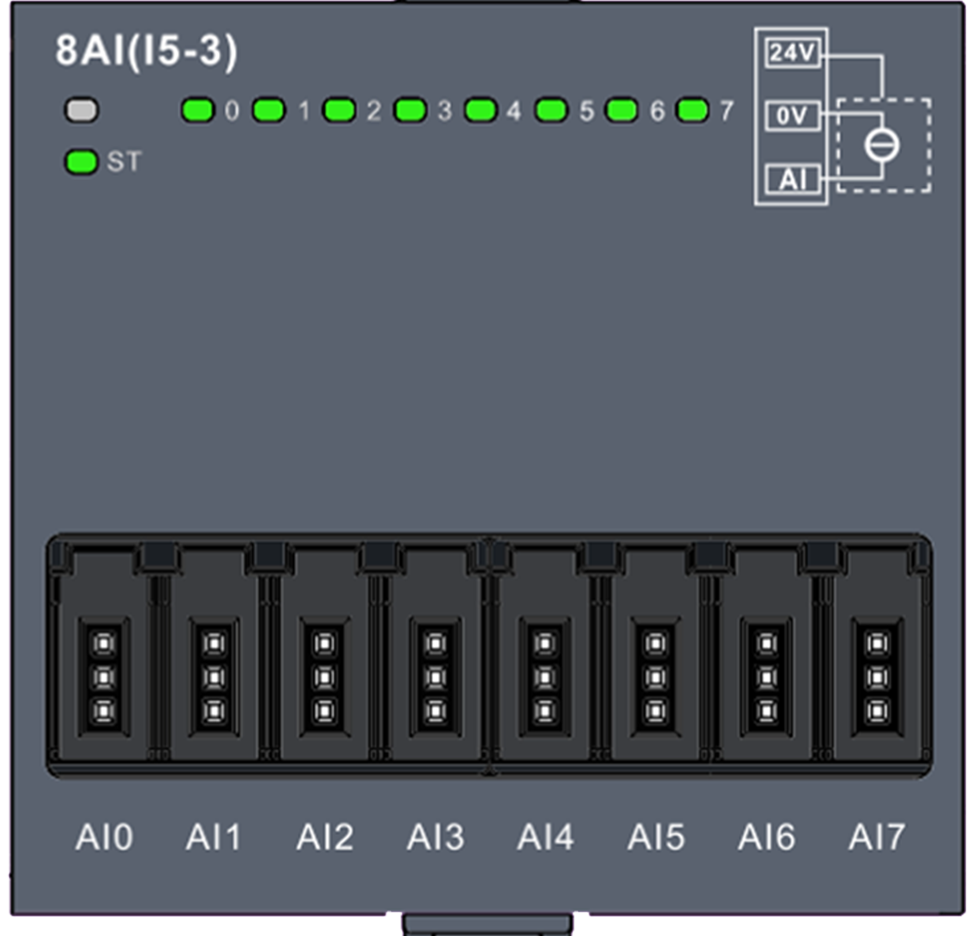 8AI(I5-3)8通道模拟量输入0-20mA,4-20mA,分辨率16bit,精度0.1%,用户量程可设置, 3位E-CON连接器 ★面板(同一端子类型)为一个标准件*端子类型:E-CON端子      信号模块:模拟量模块请筛选型号X端子类型:E-CON端子三位一体欧式端子单排欧式端子信号模块:数字量模块模拟量模块继电器模块