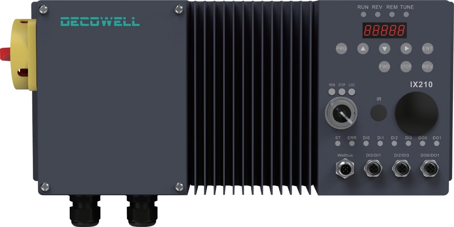 IX210系列变频器是德克威尔公司面向输送,分拣场景开发的专用驱动器,具有IP54防护等级、集成远程IO控制、结构紧凑、快速部署等特点;IX210系列变频器支持异步电机、同步电机,可支持自研WellBUS总线协议、PROFINET协议、EtherCAT协议等,集成远程控制和本地控制两种方式,适用于锂电、光伏、物流等输送分拣场景。